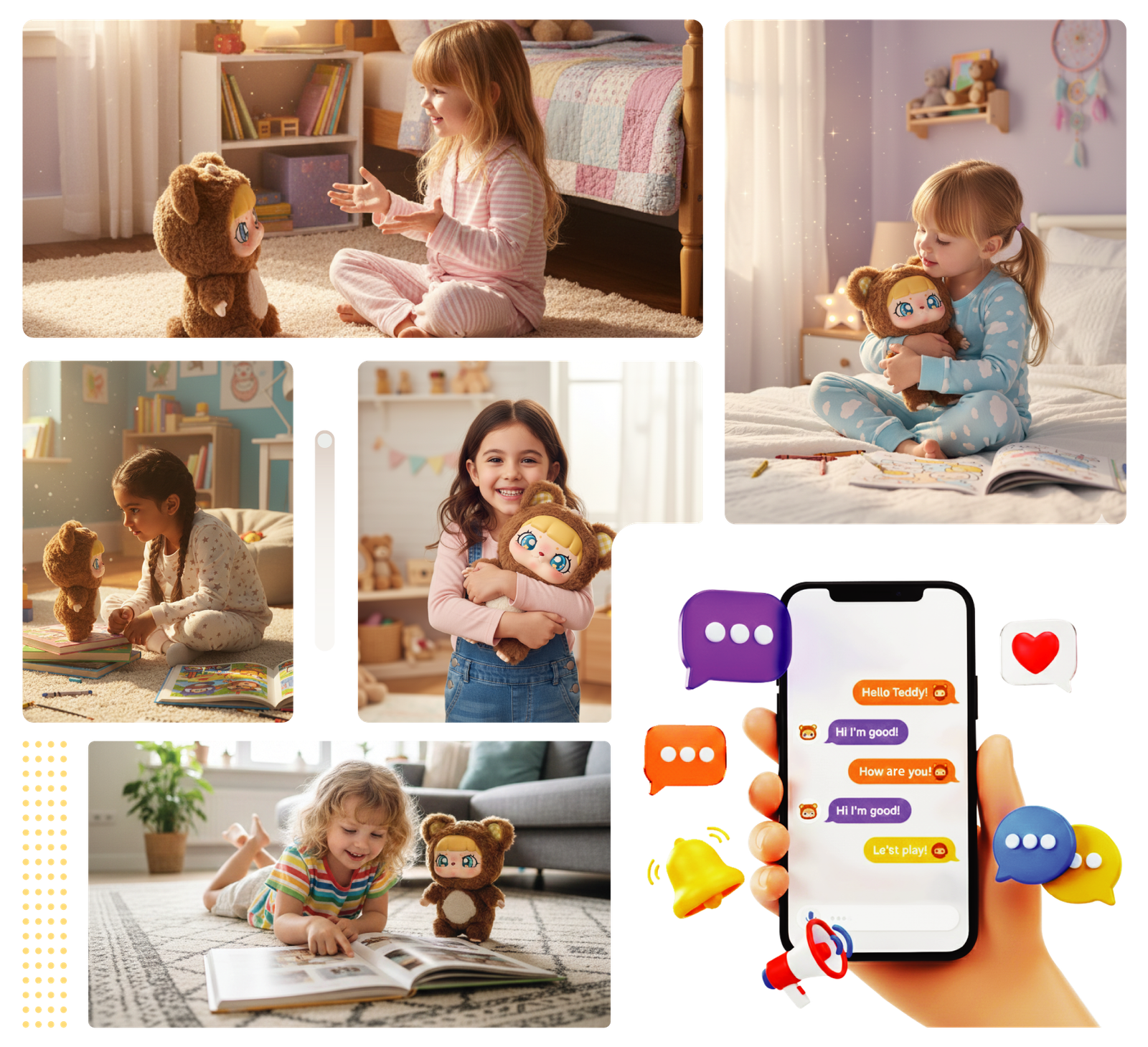 Our mission is to spark joy, imagination, and learning through interactive companions that talk, listen, and grow with every child — creating moments that comfort, educate, and inspire.