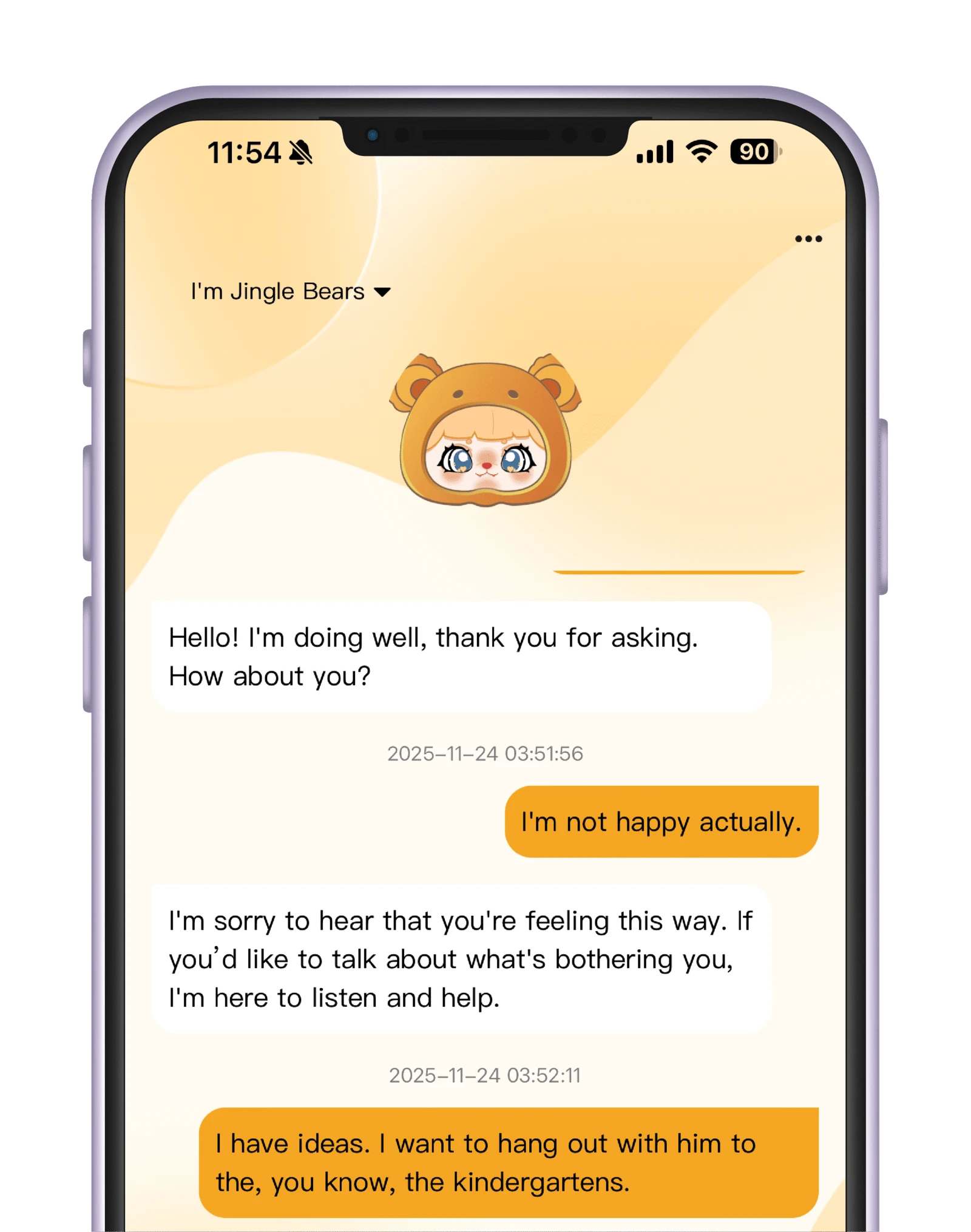 Easily edit JingleBear’s personality, story background, and thematic role. Whether you want a gentle study buddy, or a magical bedtime storyteller, you can personalize the character to fit your child’s imagination and developmental needs.